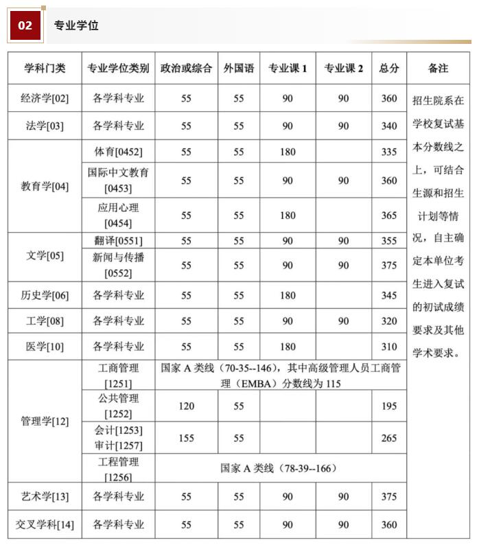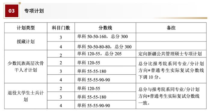 注*:按研究方向分計劃招生的,總分要求以考生報考的研究方向普通考生實際復試分數(shù)線為參照基準。
