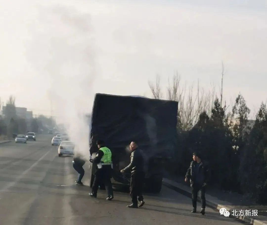 12月19日上午10時(shí)許,包白公路黃草洼村口北200米處,一輛正在行駛的重型半掛牽引車(chē)后側(cè)有濃煙飄出,包頭交管支隊(duì)東興大隊(duì)第三警務(wù)區(qū)民警發(fā)現(xiàn)后迅速攔停車(chē)輛,幫助車(chē)主將火熄滅,所幸發(fā)現(xiàn)及時(shí),沒(méi)有造成人員受傷,也保住了車(chē)內(nèi)價(jià)值幾十萬(wàn)元的食用油。