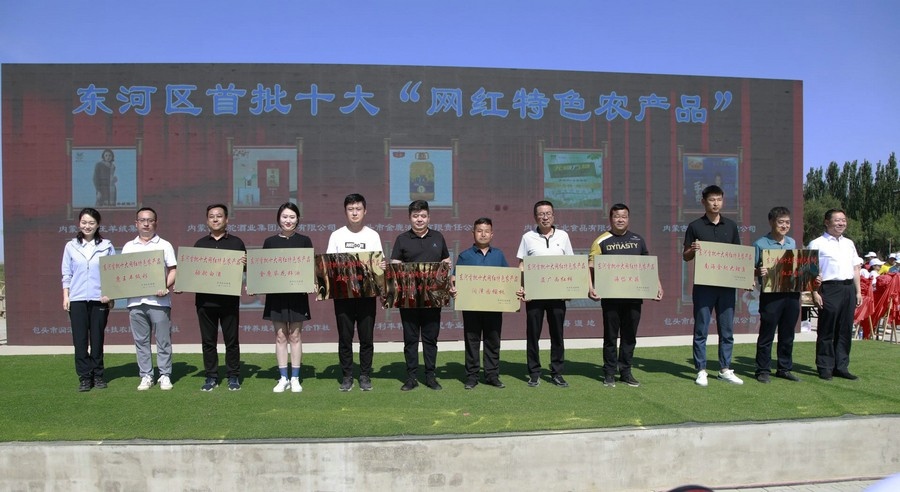 當(dāng)天活動現(xiàn)場,頒發(fā)了東河區(qū)首批“十大網(wǎng)紅特色農(nóng)產(chǎn)品”“十大網(wǎng)紅名吃”“十大東河好禮”,眾多網(wǎng)紅產(chǎn)品何名吃亮相活動現(xiàn)場,受到游客的追捧。內(nèi)蒙古旅游學(xué)會研學(xué)分會實踐教育基地、內(nèi)蒙古自然資源學(xué)會科普基地、內(nèi)蒙古農(nóng)業(yè)大學(xué)實踐教學(xué)基地、包頭市科學(xué)技術(shù)協(xié)會科普示范基地、包頭市少先隊校外實踐教育基地、包頭市中小學(xué)研學(xué)實踐基地在此間揭牌。