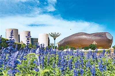 康巴什不大,建筑也不高,卻盡顯藝術、雅致與獨特。排列在其中軸線兩側的鄂爾多斯博物館、大劇院、圖書館等七大文化地標氣勢非凡。這些建筑不是簡單地模仿中國傳統(tǒng)建筑或歐洲建筑,而是創(chuàng)新運用現(xiàn)代建筑藝術對蒙古包、蒙古族服飾、蒙古族三大典籍等傳統(tǒng)文化符號進行闡釋解讀,充滿了鮮活的生命力和高超的藝術風范。