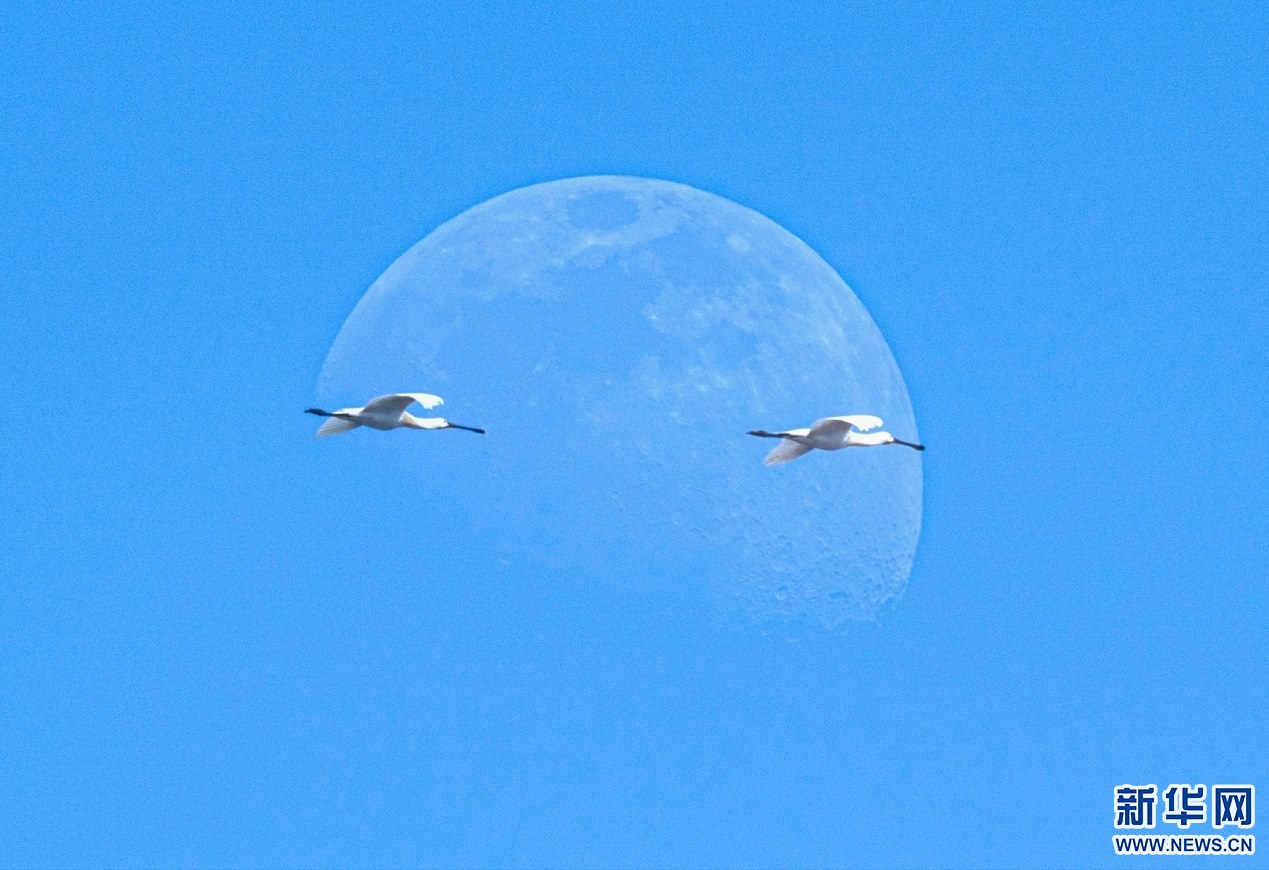 兩只候鳥在內(nèi)蒙古自治區(qū)土默特左旗海流水庫上空飛翔。新華網(wǎng)發(fā)(楊鑫 攝)