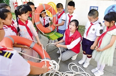 7月4日,呼和浩特市玉泉區(qū)五塔寺東街小學(xué)學(xué)生在暑期安全教育活動(dòng)中學(xué)習(xí)救生圈使用方法。暑期來臨,學(xué)生溺水事件進(jìn)入高發(fā)期,7月2日,自治區(qū)黨委教育工委、教育廳發(fā)布了致全區(qū)學(xué)生家長的一封信,讓家長們充分認(rèn)識(shí)溺水事故的危害性,做好預(yù)防溺水的家庭教育,堅(jiān)決杜絕溺水等安全事故的發(fā)生。 (記者 王磊 )