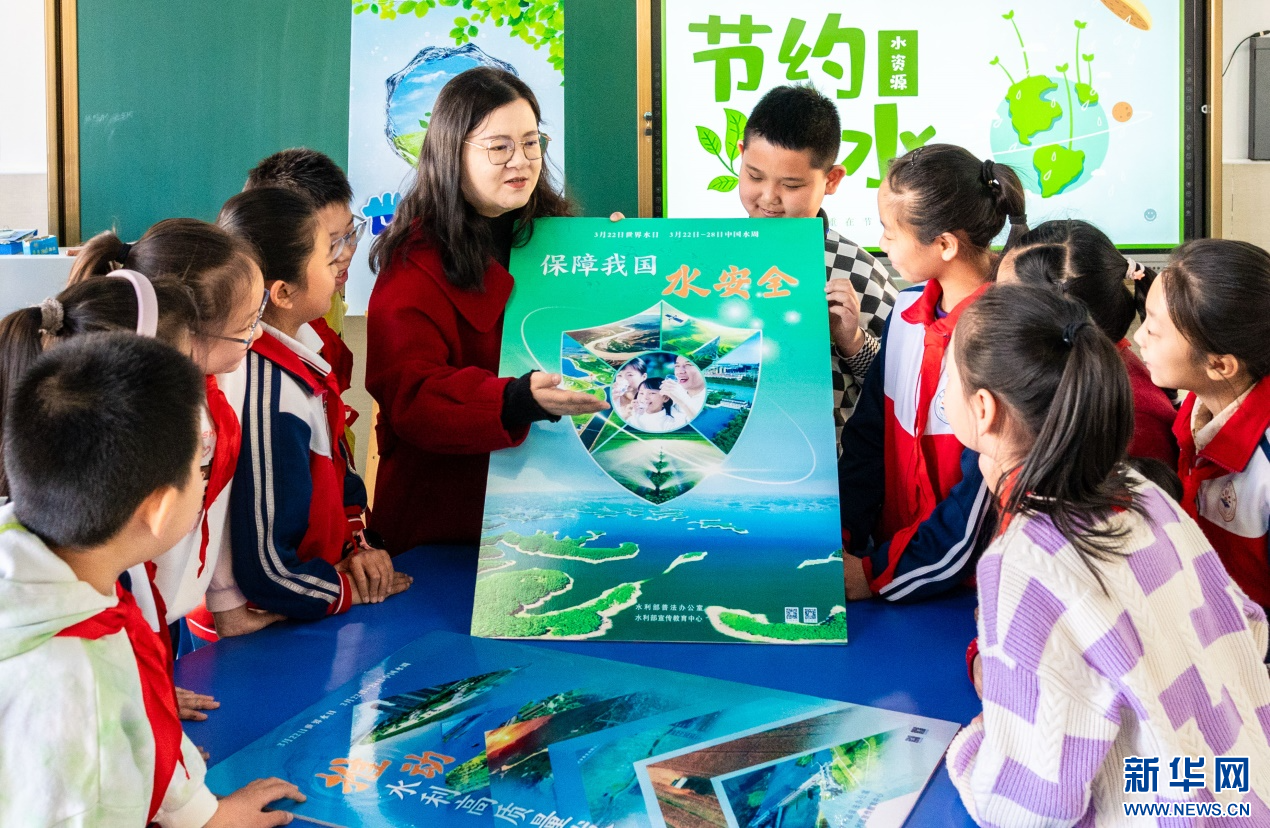 ??3月20日,呼和浩特市玉泉區(qū)石東路小學(xué)老師向?qū)W生們講解“保障我國水安全”等知識。新華網(wǎng)發(fā)(丁根厚 攝)
