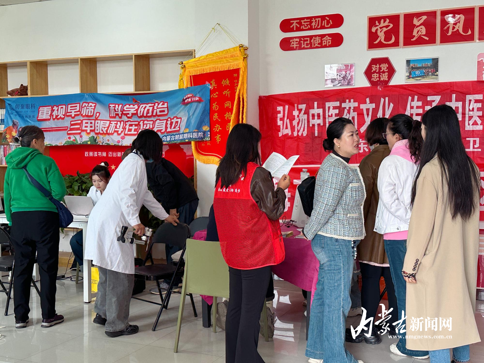“醫(yī)生,我最近看報(bào)紙總覺得字發(fā)虛,是不是白內(nèi)障又加重了?”“您別著急,先坐好,我?guī)湍屑?xì)查查眼底?!?0月10日上午,呼和浩特市新城區(qū)海拉爾路街道哲里木路社區(qū)戎輝小區(qū)活動室內(nèi)暖意融融,醫(yī)護(hù)人員正耐心地為居民做眼部檢查。當(dāng)日,哲理木路社區(qū)聯(lián)合內(nèi)蒙古朝聚眼科醫(yī)院在這里開展眼科義診活動。