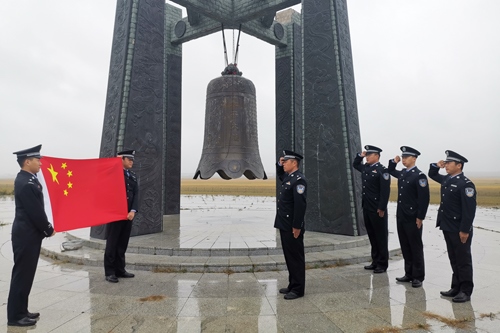 上午8時(shí)整,在塔日根諾爾邊境派出所,伴隨著雄壯的國(guó)歌聲,五星紅旗冉冉升起,全體民警肅然挺立,向在抗日戰(zhàn)爭(zhēng)中死難的同胞默哀。在諾門罕戰(zhàn)役紀(jì)念廣場(chǎng)的和平大鐘前,諾門罕布日德邊境派出所民警面向國(guó)旗,舉起右手,重溫人民警察誓詞,錚錚誓言響徹天際,感染并激勵(lì)著民警扎根北疆、建功北疆。巡邊途中,額布德格邊境派出所民警為界碑拭去灰塵,以獨(dú)有的方式向無數(shù)為國(guó)捐軀的革命烈士致以崇高敬意。罕達(dá)蓋邊境派出所組織觀看了《九一八事變》,通過觀影,警醒民警時(shí)刻銘記使命職責(zé),勿忘國(guó)恥,發(fā)奮圖強(qiáng)。