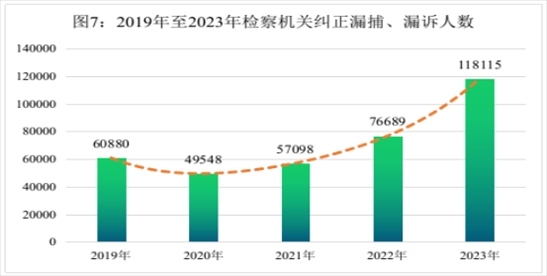 全國檢察機(jī)關(guān)共糾正公安機(jī)關(guān)遺漏提請(qǐng)逮捕的犯罪嫌疑人19485人,同比上升12.8%;糾正遺漏起訴同案犯98630人,同比上升66%,追捕、追訴力度不斷加大。糾正漏捕判處三年有期徒刑以上刑罰8781人,糾正漏訴判處有期徒刑以上刑罰78137人,共計(jì)86918人,糾正漏捕、漏訴判處有期徒刑以上刑罰率96.5%,同比增加11.1個(gè)百分點(diǎn),質(zhì)量總體較高。