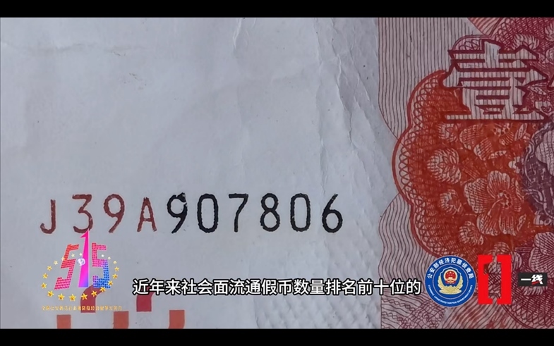 央視報道的2023年度打擊經(jīng)濟(jì)犯罪十大典型案例中,關(guān)于該案涉及假幣的相關(guān)畫面。