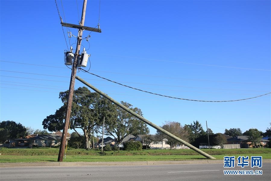 這是10月29日在美國(guó)路易斯安那州新奧爾良拍攝的颶風(fēng)“澤塔”刮歪的電線(xiàn)桿。新華社發(fā)(魏蘭攝)