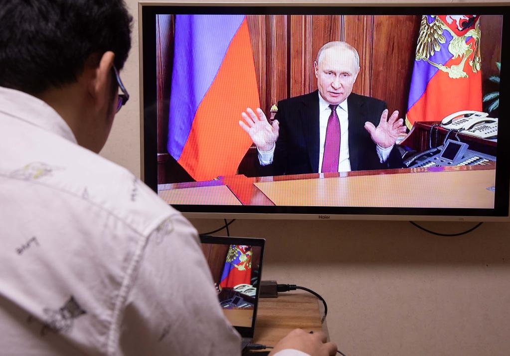 俄羅斯總統(tǒng)普京24日清晨發(fā)表電視講話說,決定在頓巴斯地區(qū)發(fā)起特別軍事行動。(新華社記者白雪騏攝)