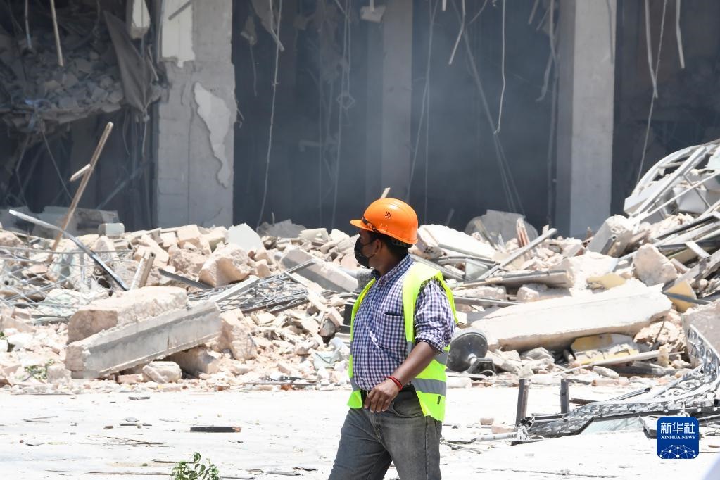 5月6日,救援人員在古巴首都哈瓦那的酒店爆炸事故現(xiàn)場(chǎng)工作。新華社發(fā)(華金·埃爾南德斯 攝)