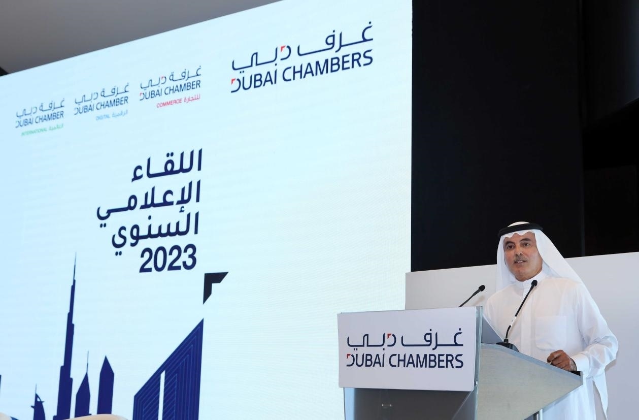圖為迪拜商會主席在年會上發(fā)表致辭。迪拜媒體辦公室供圖