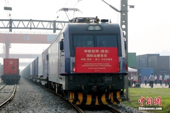 資料圖:2022年9月16日,中歐班列(西安)國際運郵專線首次開行,列車裝載著國際郵件、包裹、商業(yè)快件從西安國際港站駛出,經(jīng)阿拉山口口岸出境,將于約12天后抵達波蘭馬拉舍維奇,郵件再交由波蘭郵政轉運到歐洲各國。 中新社記者 張遠 攝