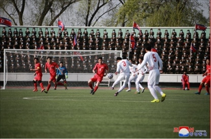 報道稱,首先進行了朝鮮內(nèi)閣和國防省職員的足球比賽,兩隊攻防激烈,最終以1:1戰(zhàn)平,隨后進入了點球大戰(zhàn),國防省隊以5:3力克內(nèi)閣隊。