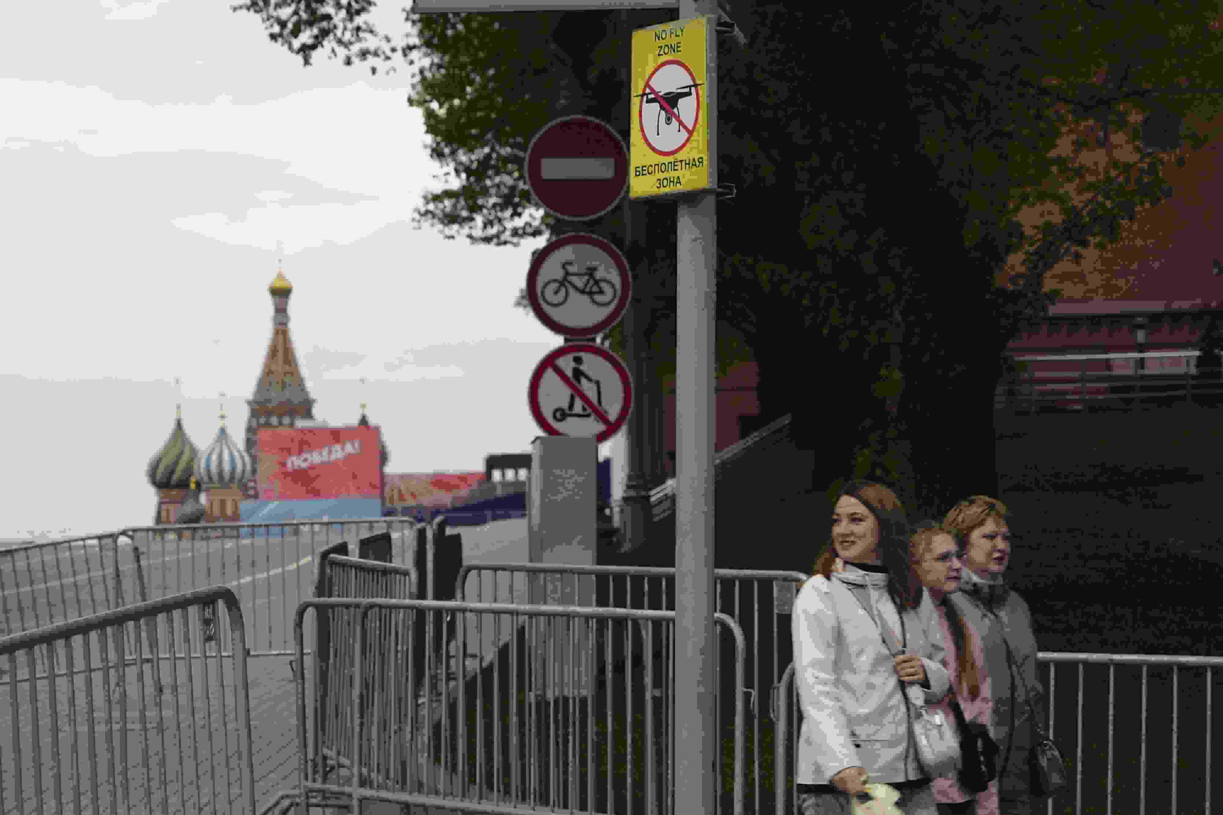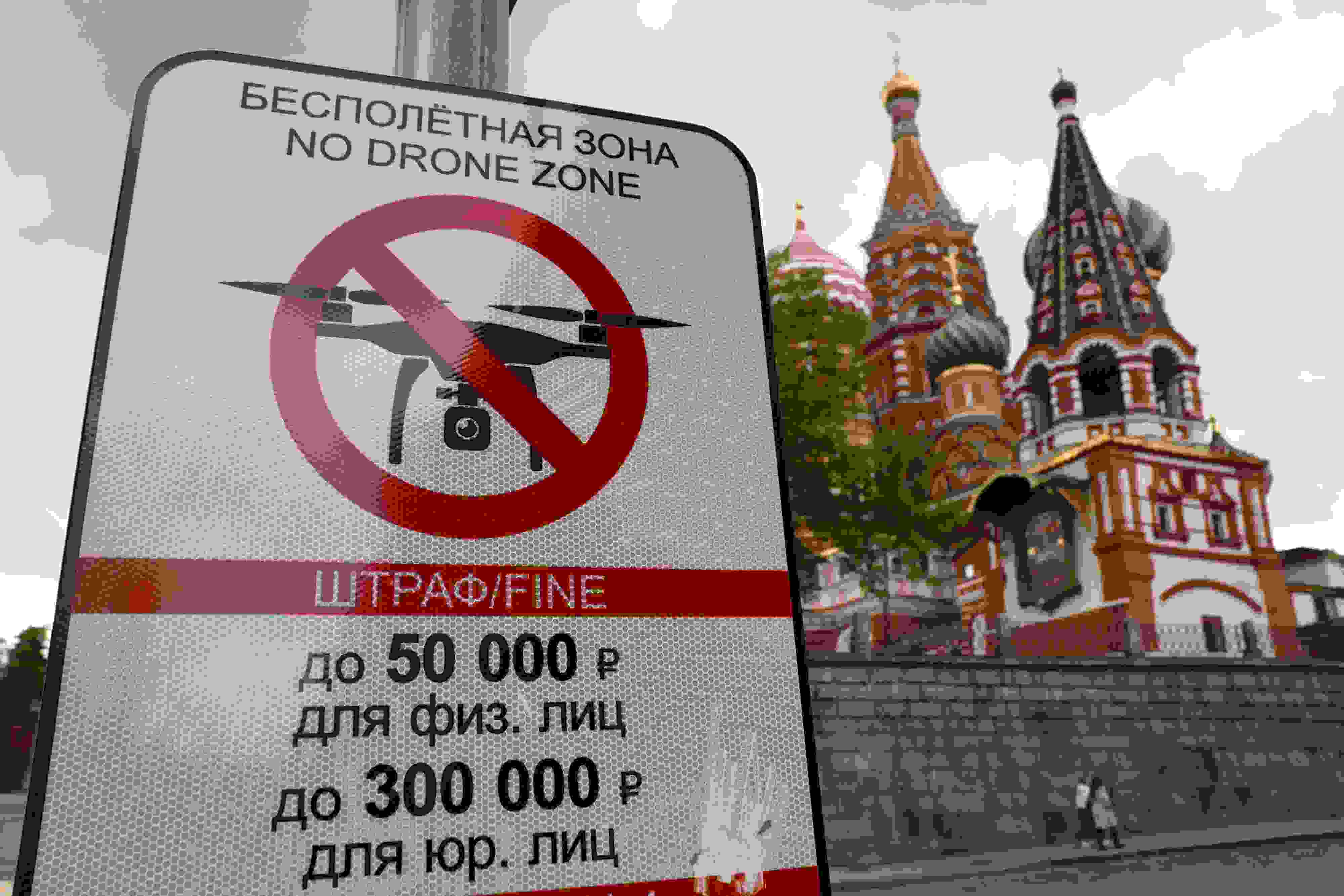 當(dāng)?shù)貢r間2023年5月3日,俄羅斯莫斯科,莫斯科市中心懸掛的“無人駕駛飛機禁飛區(qū)”的標(biāo)志,禁止無人機在該地區(qū)飛行??死锬妨謱m遭無人機襲擊后,莫斯科市長宣布禁止未經(jīng)授權(quán)的無人機在俄羅斯首都上空飛行。 視覺中國
