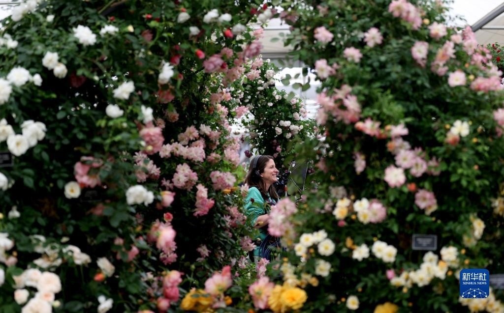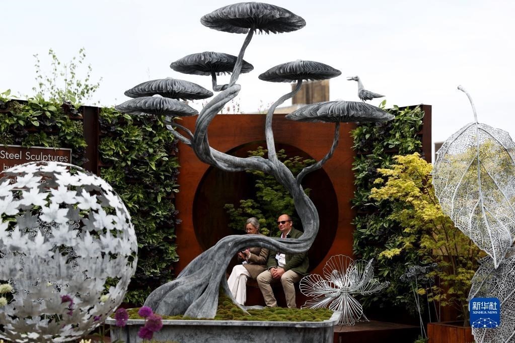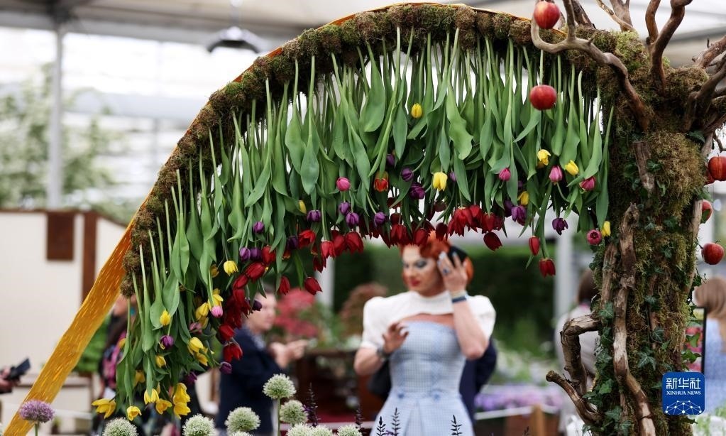 5月22日,人們?cè)谟?guó)倫敦參加切爾西花展媒體日。   新華社記者 李穎 攝