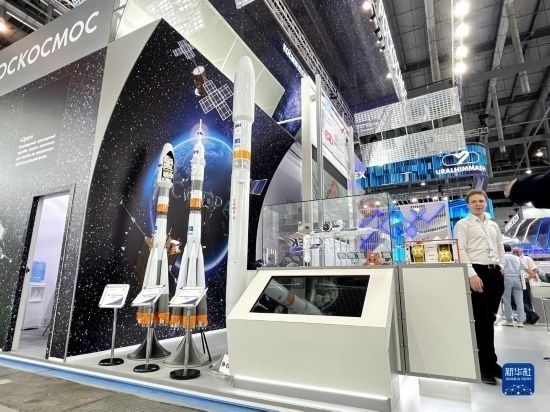 7月10日,運(yùn)載火箭模型在俄羅斯葉卡捷琳堡市舉行的國(guó)際創(chuàng)新工業(yè)展上展出。新華社記者黃河攝