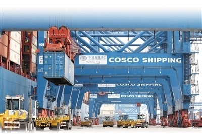 中遠(yuǎn)海運(yùn)港口阿聯(lián)酋阿布扎比碼頭采用岸橋預(yù)留自動(dòng)化和堆場自動(dòng)化作業(yè)模式,可作業(yè)超2萬標(biāo)準(zhǔn)箱大型船舶,年設(shè)計(jì)能力250萬標(biāo)準(zhǔn)箱。本報(bào)中東中心分社 納達(dá)爾·達(dá)烏德攝
