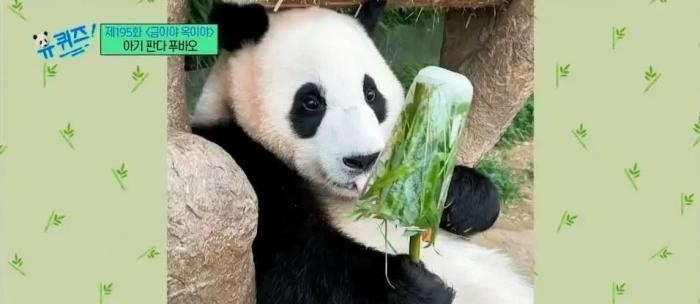 “福寶”吃“竹子冰淇淋”。(圖片來源:韓國tvN電視臺(tái))