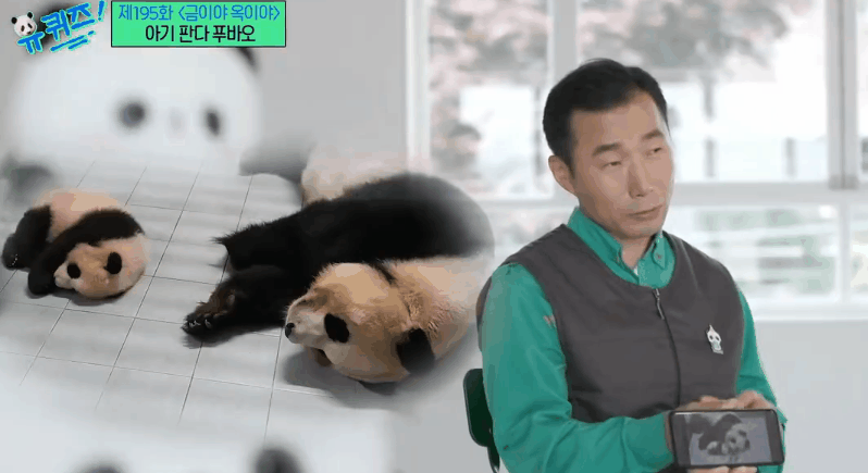 在韓國綜藝節(jié)目中,飼養(yǎng)員姜爺爺展示“福寶”照片。(來源:韓國tvN電視臺(tái))