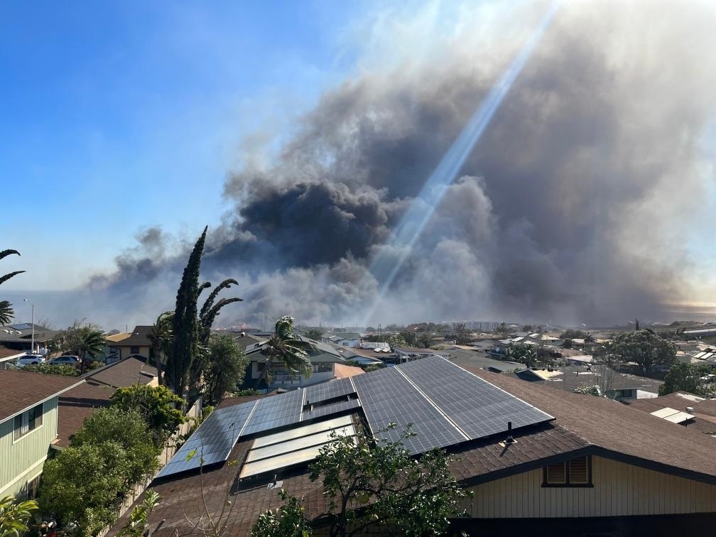 這張亞歷克斯·弗里曼8月8日拍攝的照片顯示,美國(guó)夏威夷州毛伊縣拉海納鎮(zhèn)上空濃煙滾滾。新華社發(fā)(亞歷克斯·弗里曼攝)