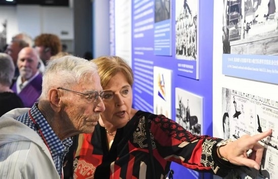 11月1日,在重慶史迪威博物館展廳,嘉蘭惠(右一)和飛虎隊老兵莫耶在重慶史迪威博物館參觀。新華社記者 王全超 攝