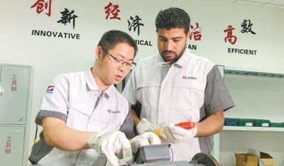 中國師傅們的悉心教導(dǎo),讓埃方員工對中國感情愈加深厚。烏薩馬表示,自己能從零開始當(dāng)上部門副經(jīng)理,特別要感謝他的中國師傅沈林洪?!皫煾翟诠ぷ魃鲜职咽謧魇诩寄埽屛业膶I(yè)技術(shù)水平逐漸提升。他在生活上也對我百般照顧,助我快速成長?!睘跛_馬說,雖然師傅現(xiàn)在已經(jīng)回國了,但他們還一直保持著聯(lián)系,“每逢春節(jié)、開齋節(jié)等兩國的重要節(jié)日,我們都會互相問候?!?/p>