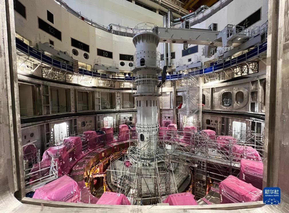 ?這是11月23日在位于法國圣保羅-萊迪朗斯的國際熱核聚變實驗反應堆(ITER)建設現場拍攝的安裝中的托卡馬克裝置。新華社記者 高靜 攝