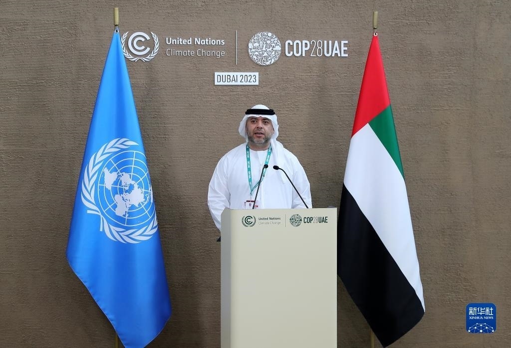 12月12日,在阿聯(lián)酋迪拜,COP28總干事馬吉德·蘇韋迪在新聞發(fā)布會上回答記者提問。新華社記者 王東震 攝