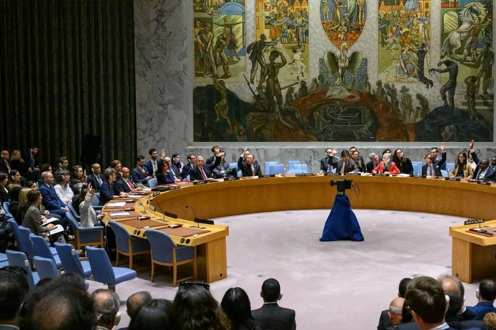 這是12月8日在位于紐約的聯(lián)合國總部拍攝的聯(lián)合國安理會(huì)會(huì)議現(xiàn)場(chǎng)。美國當(dāng)天否決了聯(lián)合國安理會(huì)一份旨在推動(dòng)實(shí)現(xiàn)巴以人道主義?;鸬臎Q議草案。新華社發(fā)(聯(lián)合國供圖/洛伊·費(fèi)利佩攝)