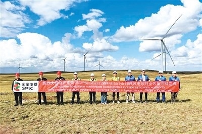 哈薩克斯坦阿克莫拉州二期風(fēng)電項(xiàng)目并網(wǎng)現(xiàn)場。資料圖片