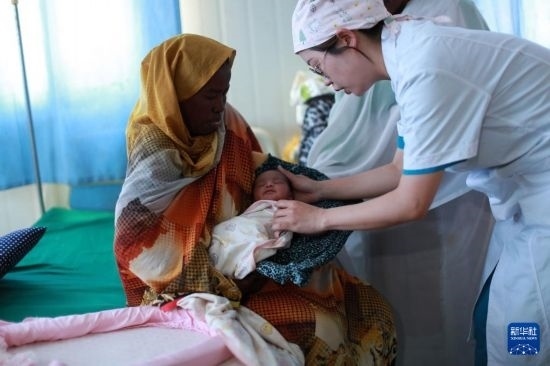 2023年2月22日,中國援蘇丹醫(yī)療隊婦產(chǎn)科醫(yī)生劉韡在蘇丹阿布歐舍醫(yī)院的病房為一名新生兒做檢查。新華社發(fā)(中國援蘇丹醫(yī)療隊供圖)