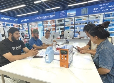 最近,埃馬紐埃爾又開始關(guān)注新能源產(chǎn)品?!翱溌∫恍┑胤酱嬖陔娏Χ倘?、供電不穩(wěn)的問題,很多當(dāng)?shù)厝讼M夷茉谥袊业胶线m的產(chǎn)品。”為此,他把目標(biāo)瞄準(zhǔn)了義烏國際商貿(mào)城的新能源產(chǎn)品市場,尋找到一些適合喀麥隆的光伏設(shè)備?!爸袊男履茉串a(chǎn)品性能可靠、性價(jià)比高,產(chǎn)品品類覆蓋領(lǐng)域廣泛?!卑qR紐埃爾表示,大到醫(yī)療機(jī)構(gòu),小到禽畜養(yǎng)殖場,中國光伏設(shè)備供應(yīng)的電力有助于滿足當(dāng)?shù)孛癖娚a(chǎn)生活的用電需求。