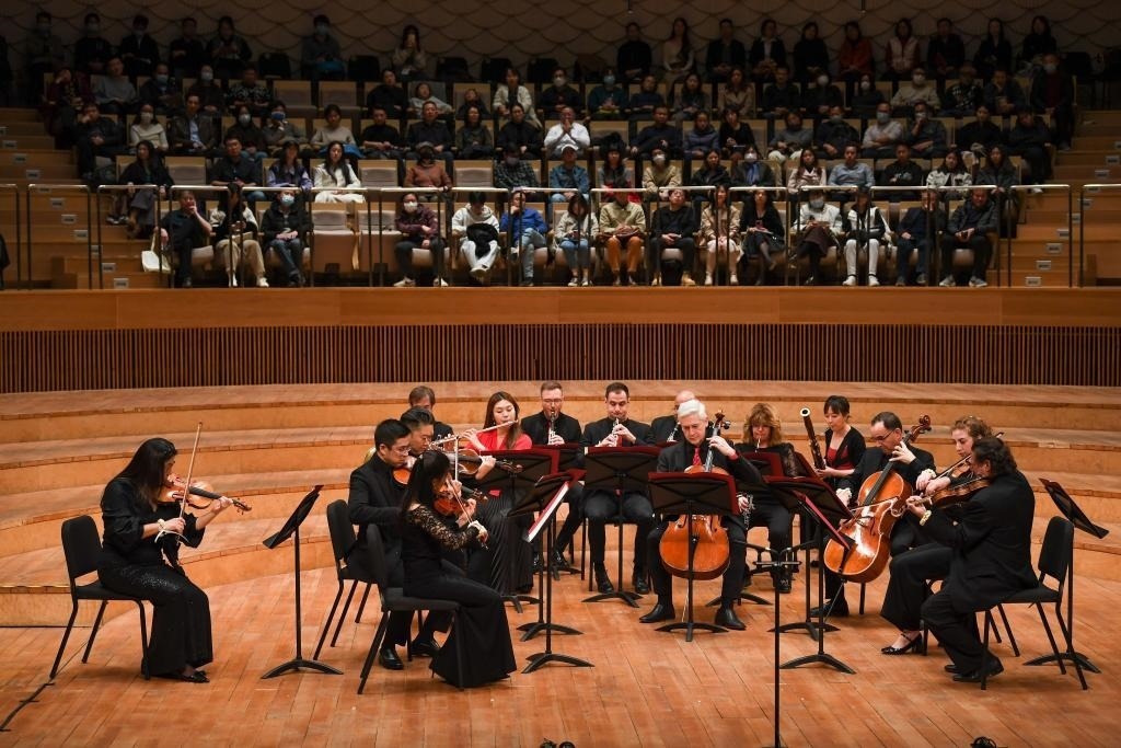 ?這是2023年11月16日拍攝的音樂會現(xiàn)場。當日,“費城之約”——費城交響樂團與蘇州交響樂團室內樂音樂會在江蘇蘇州舉行。新華社記者 李博 攝