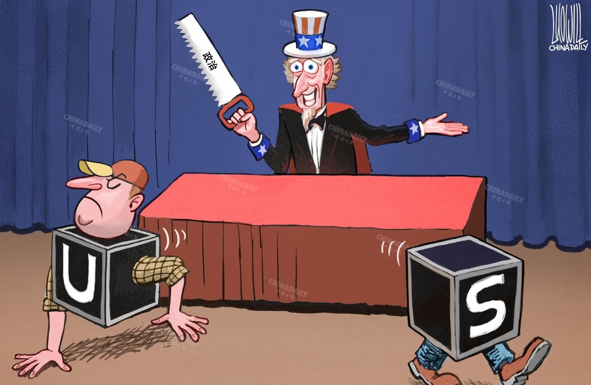 美國(guó)政治導(dǎo)致社會(huì)分裂。(來源:中國(guó)日?qǐng)?bào) 作者:羅杰)