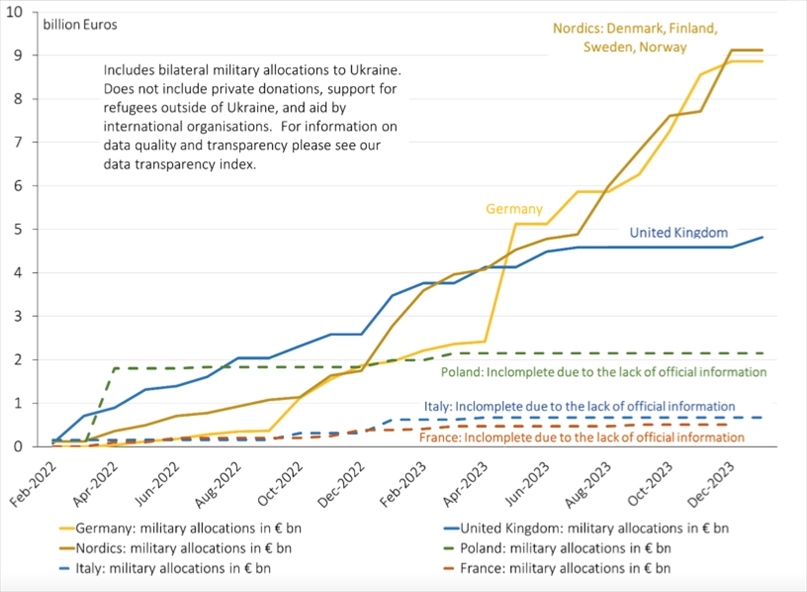 △歐洲國家對(duì)烏軍援圖表(圖片來源:基爾世界經(jīng)濟(jì)研究所)