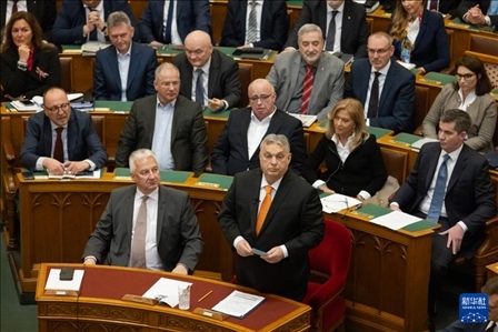 2月26日,匈牙利總理歐爾班(前右)在布達(dá)佩斯舉行的國(guó)會(huì)春季會(huì)議上致辭。新華社發(fā)(弗爾季·奧蒂洛攝)