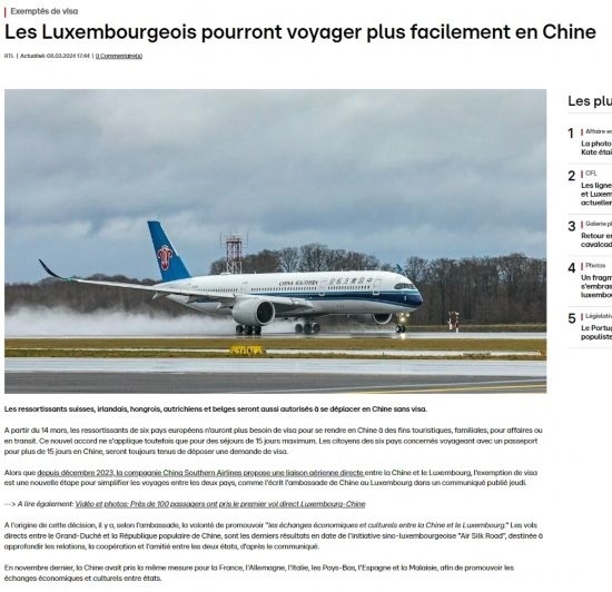 盧森堡輿論高度評(píng)價(jià)中方對(duì)盧實(shí)施免簽政策