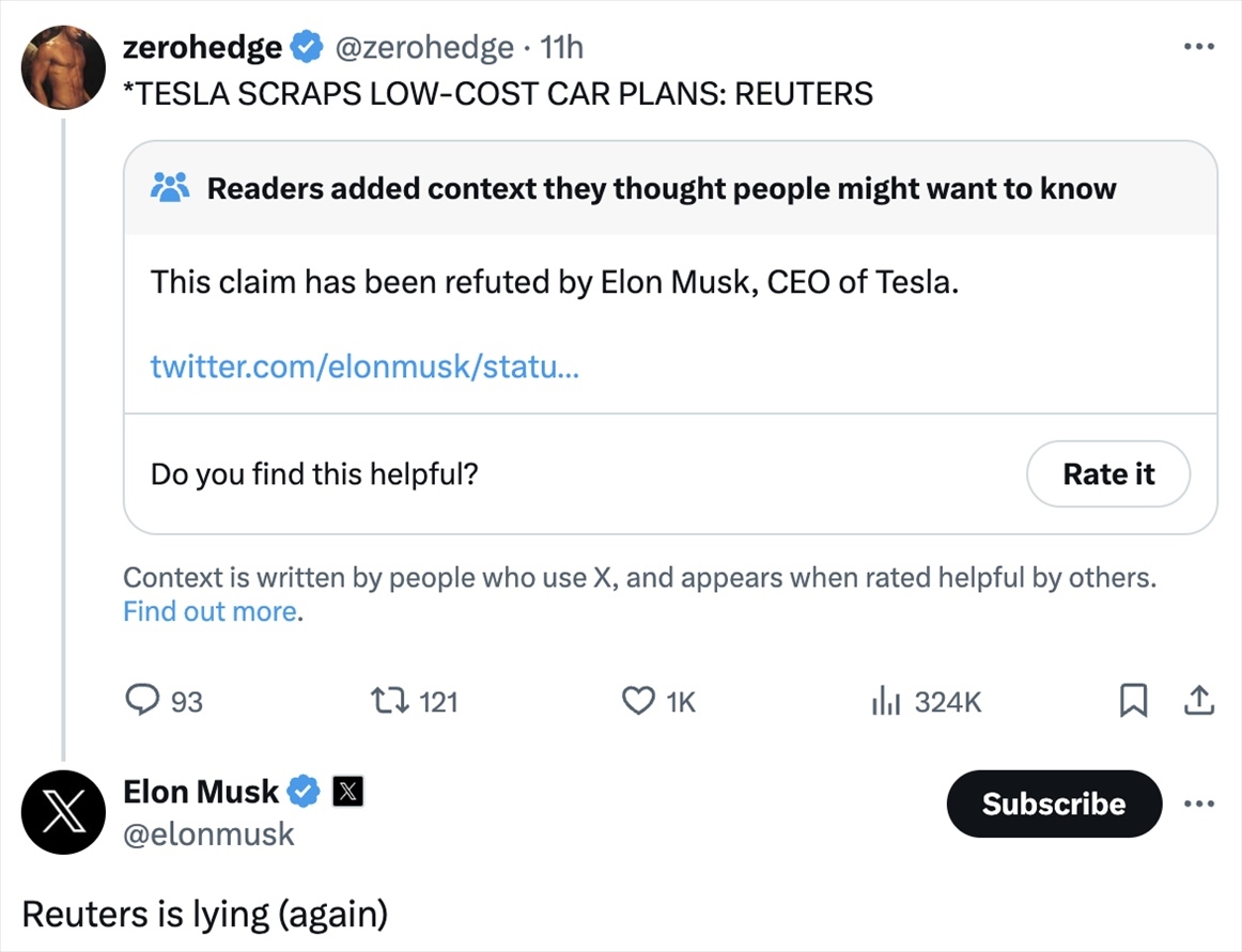 隨后特斯拉CEO埃隆·馬斯克在旗下社交媒體平臺(tái)X上發(fā)文否認(rèn)了這一報(bào)道,稱其“又在說謊”。