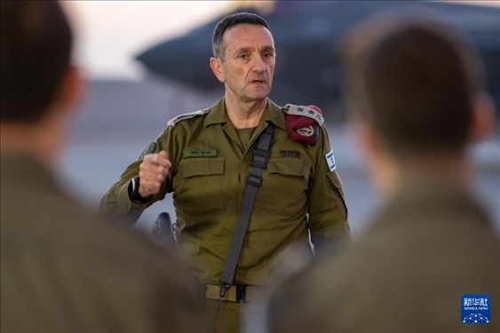 4月15日,以色列國防軍總參謀長哈萊維在以色列南部的內(nèi)瓦提姆空軍基地講話。新華社發(fā)(以色列國防軍供圖)