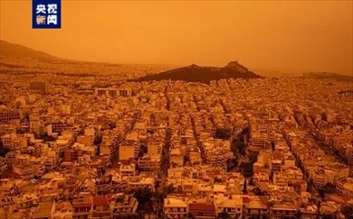 當(dāng)?shù)貢r間23日,希臘雅典遭遇來自非洲撒哈拉沙漠的沙塵侵襲。當(dāng)天在希臘議會大樓附近拍攝的畫面顯示,雅典城市上空變成橙黃色,樓房和街道籠罩在沙塵之中。