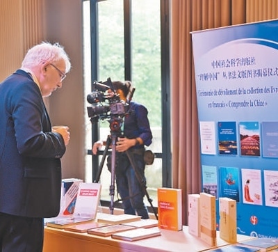 5月3日,中國社會(huì)科學(xué)出版社“理解中國”叢書法文版圖書揭幕儀式在法國巴黎舉行。圖為現(xiàn)場嘉賓在展位前駐足了解相關(guān)圖書。本報(bào)記者 楊 一攝