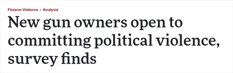 研究報(bào)告指出:“最近購(gòu)買槍支的人和幾乎總是攜帶槍支的人更有可能認(rèn)為政治暴力合理,并且更愿意參與其中,更愿意為實(shí)現(xiàn)政治目的而殺戮,也更愿意組建暴力團(tuán)體。”