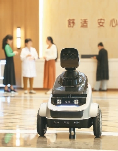 圖為在山東省東營(yíng)市東營(yíng)區(qū)德康寧醫(yī)養(yǎng)中心,智能機(jī)器人在巡檢。劉智峰攝(人民視覺)