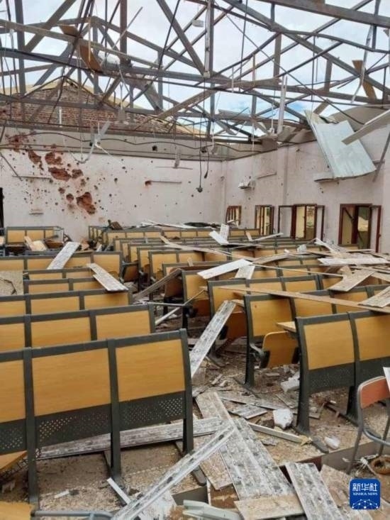 這是8月26日在蘇丹北達(dá)爾富爾州首府法希爾市拍攝的在炮擊中損毀的學(xué)校(手機(jī)照片)。新華社發(fā)(蘇丹北達(dá)爾富爾州衛(wèi)生部供圖)