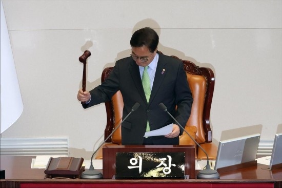 最終,在7日下午的國會全體會議上,絕大多數(shù)執(zhí)政黨議員先是對涉總統(tǒng)夫人的“金建希特檢法”投下反對票將其否決,隨后紛紛退場,拒絕參加接下來的總統(tǒng)彈劾動議案表決,導致該動議案因投票人數(shù)不足未獲通過。