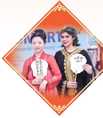 在約旦安曼中國文化中心和費(fèi)城大學(xué)孔子學(xué)院聯(lián)合主辦的“2025歡樂春節(jié)進(jìn)校園”活動(dòng)上,當(dāng)?shù)貙W(xué)生表演漢服走秀。