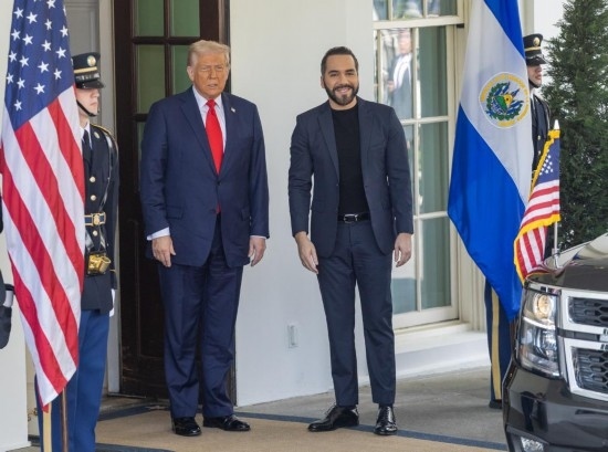 2025年4月14日,美國(guó)總統(tǒng)特朗普在白宮會(huì)見到訪的薩爾瓦多總統(tǒng)布克爾。新華社記者胡友松攝