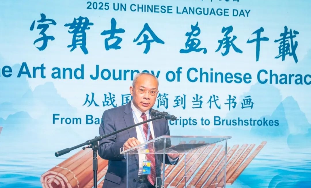此次中文日活動(dòng)以“字貫古今 畫(huà)承千載——從戰(zhàn)國(guó)竹簡(jiǎn)到當(dāng)代書(shū)畫(huà)”為主題,由中國(guó)常駐維也納代表團(tuán)、聯(lián)合國(guó)維也納辦事處主辦,中央數(shù)字電視書(shū)畫(huà)頻道、清華大學(xué)、安徽大學(xué)、吉林大學(xué)協(xié)辦,共同為維也納聯(lián)合國(guó)總部獻(xiàn)上了一場(chǎng)中國(guó)文化盛宴。清華大學(xué)副校長(zhǎng)彭剛、中央數(shù)字電視書(shū)畫(huà)頻道董事局主席王平在開(kāi)幕式致辭,探討了文字、文化、文明三者之間的緊密關(guān)系和文明交流互鑒的重要意義。