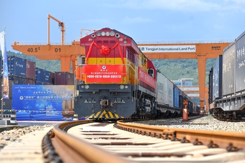 當(dāng)日下午,“鄭和號(hào)”海公鐵國(guó)際多式聯(lián)運(yùn)班列首發(fā)列車從云南省昆明市騰俊國(guó)際陸港公鐵聯(lián)運(yùn)中心發(fā)車,貨物經(jīng)中老鐵路抵達(dá)老撾萬(wàn)象后再分成三條線路,分別運(yùn)至泰國(guó)、新加坡和孟加拉國(guó),開辟了中國(guó)昆明至孟加拉國(guó)吉大港的全新路線。