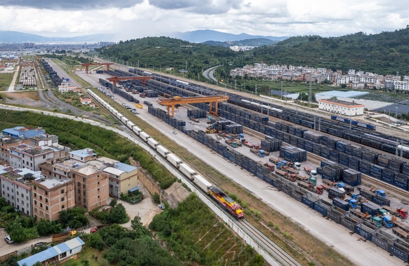 當(dāng)日,中老鐵路國際貨物列車(玉溪—萬象)實現(xiàn)雙向開行。中老鐵路自2021年12月開通以來,截至今年7月底,運輸貨物超6450萬噸,其中跨境貨物突破1490萬噸。
